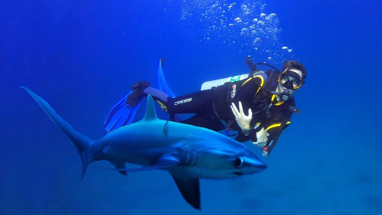 Sharks here are curious, not aggressive. They approach slowly. They inspect. They circle. Staying calm and still keeps the dive under control.