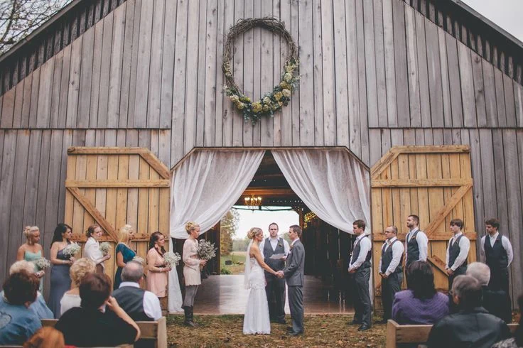 Probably the most iconic rustic wedding venues, barns bring instant warmth and charm. Picture fairy lights strung across wooden beams, long harvest tables set with candles, and a dance floor surrounded by history. Barn wedding locations are perfect for couples who love that cozy, storybook atmosphere. They also provide built-in cover, making them a reliable choice if you’re worried about weather.